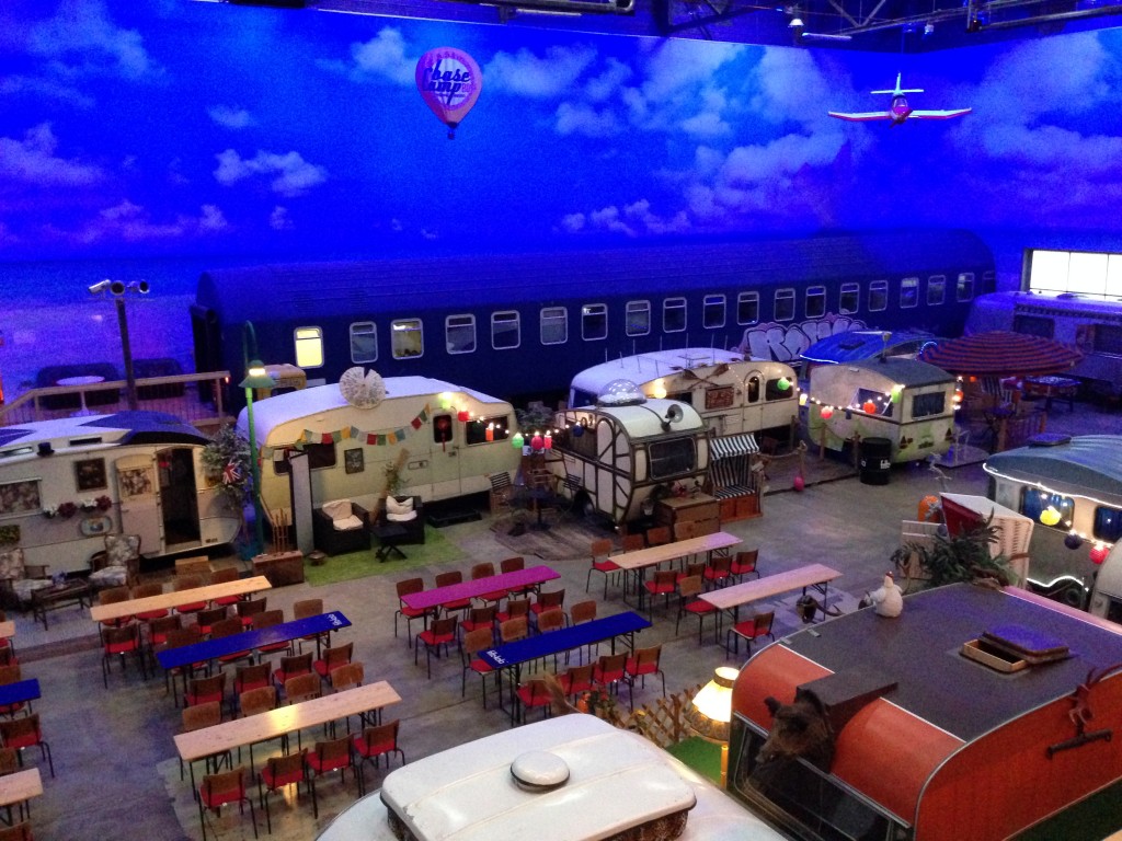 Jawel! Basecamp bestaat uit een grote hangaar waarin verschillende caravans, busjes en zelfs een trein staan opgesteld. De trein bestaat uit verschillende coupés die je apart kan reserveren. Persoonlijk kozen we voor de caravan. Toeval of niet, maar het thema van onze caravan was ‘globetrotter’.