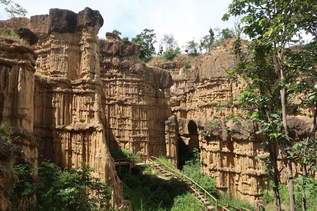 We besluiten de scooter aan een eerste testrit te onderwerpen richting Pha Chor, zodat we wat meer vertrouwen verzamelen in de scooter voor we de bochtige bergpassen in trekken. Pha Chor blijkt een pareltje te zijn: werkelijk geen enkele toerist en een adembenemend natuurlijk fenomeen dat doet denken aan een mini Grand Canyon!