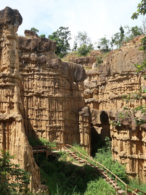 Tja, Vang Vieng. Helaas boekten we al een vliegticket naar Vietnam en we merken dat we veel te ruim hebben gerekend. Vroeger was Vang Vieng het mekka voor backpackers. Zij kwamen hier massaal dobberen in een band op de rivier terwijl ze sloten alcohol en drugs consumeerden. Nadat er verschillende Westerse toeristen hierbij om het leven kwamen, werd deze activiteit aan banden gelegd. Het dorp voelt een beetje als vergane glorie. De Laotianen hebben hun doelpubliek bijgevolg verschoven van Westerse backpackers naar Koreaanse toeristen. Die zakken in grote getalen af naar dit dorp. Korean BBQ restaurants en Soju zijn massaal aanwezig. Ze rijden ook allemaal rond met een luidruchtige buggy, blijkbaar een onderdeel van hun “package deal”.