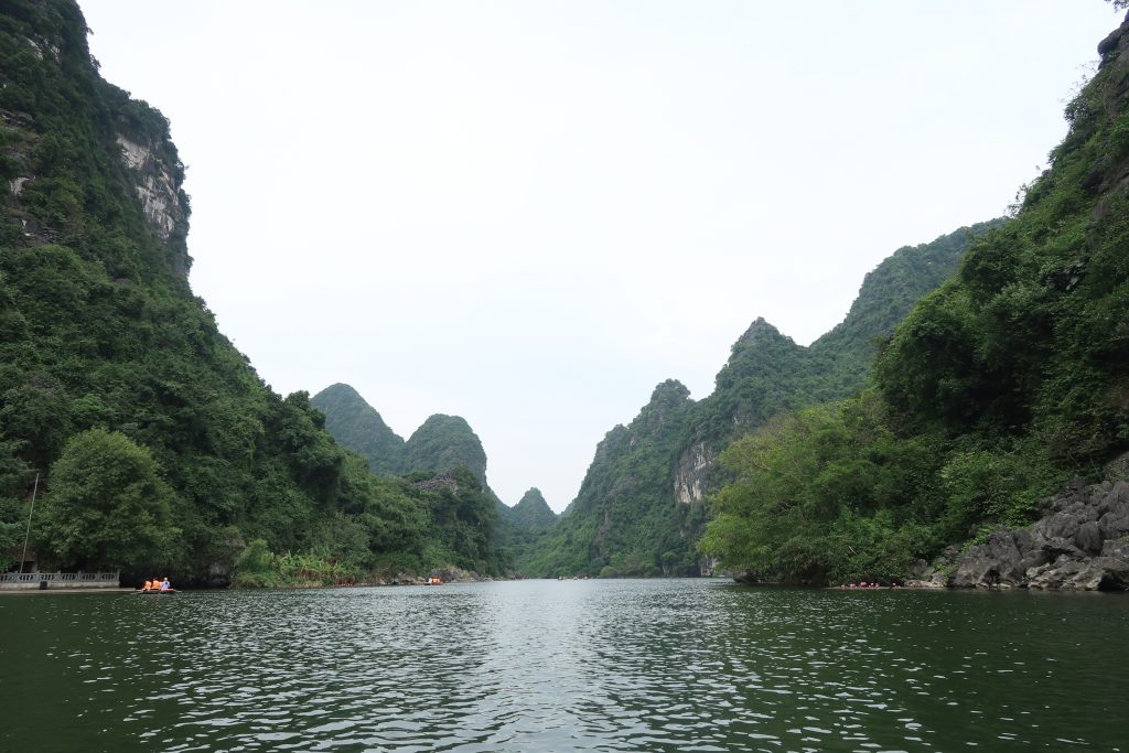 Met de scooter rijden we naar Trang An, een groot natuurgebied met riviertjes door grottenstelsels langs de karstgebergten. Het geheel is uitmuntend georganiseerd en veilig. Heel onaziatisch. We varen op een bootje doorheen de waanzinnig mooie omgeving, terwijl we ons bukken om ons hoofd niet te stoten in de grotten. De Vietnamese vrouw achteraan ons bootje roeit ons voort gedurende de drie uur durende vaart. Uit medelijden helpt Otto mee roeien, verrassend vermoeiend. De vrouw moet enorme arm- en rugspieren hebben ontwikkeld over de jaren heen. Op onze scooterrit doorheen de karstgebergten merken we een raar gebruik op langs de weg. Er zitten verschillende vrouwen enkele honderden meters uit elkaar onder een paraplu met een tafeltje. Daarop ligt een compleet geroosterde berggeit. Één van de geitjes mist het middenste gedeelte, die vrouw heeft al wat verdiend. Het is akelig om de geitjes in hun geheel te zien, met ogen en al. Lokale specialiteit die we toch niet direct willen uitproberen.